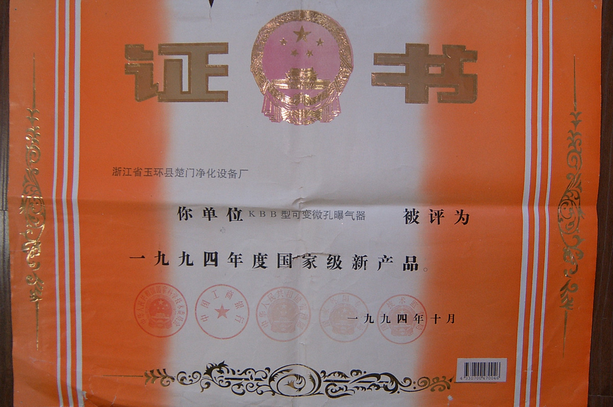 公司主導產品“海通”牌KBB型可變微孔曝氣器系列,是一種高效節能、無需維修的充氧曝氣裝置;在鼓風曝氣系統膜片式微孔曝氣器的開發、研究、制造方面取得了一系列豐碩的成果。曾多次榮獲國家、省、市級各項獎勵與殊榮,是國家環境保護總局《中、微孔曝氣器產品標準》參編單位HJ/T252-2006。中國環保產業協會水污染治理委員會推薦產品;2002年建設部科技推廣項目,全國曝氣設備質量過硬放心品牌企業和中國環保產品質量信得過重點品牌;已在日處理水量16×104t/d的石家莊橋西污水處理廠一期和二期改造工程,兩次使用均在五年以上及幾千家單位1~10多年的生產性運行,性能穩定,布氣均勻,未出現膜片滑出和破損現象,是新一代免維修產品。
